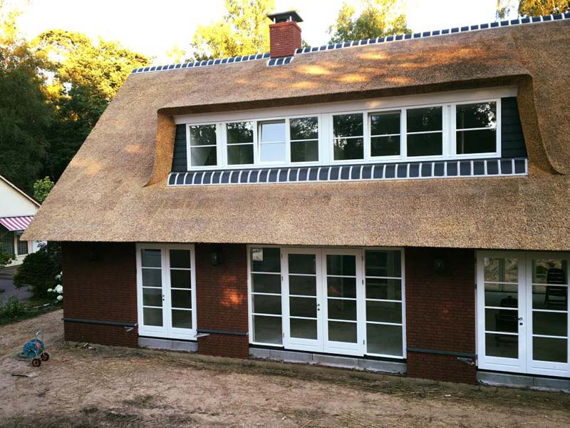 Uw woning zal een ware metamorfose ondergaan wanneer een dak bedekt met pannen vervangen wordt door een rieten dak. De laatste jaren is dit erg in opkomst vanwege het rustgevende en duurzame karakter van riet, de hoge isolatiewaarden en de sfeervolle uitstraling. Wij voorzien u graag van advies of een heldere offerte voor uw rieten dak.