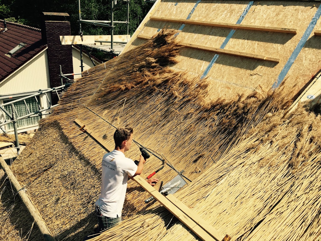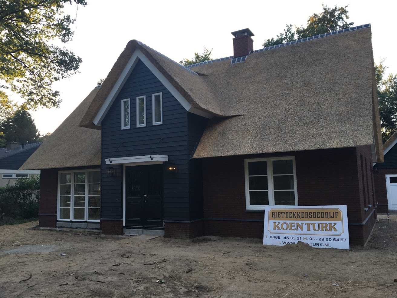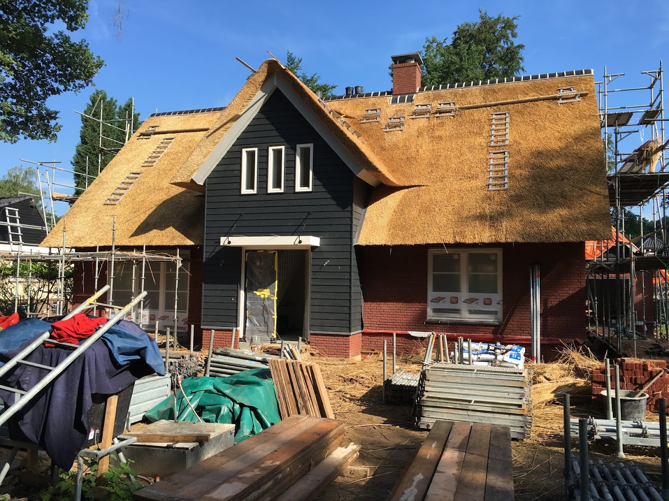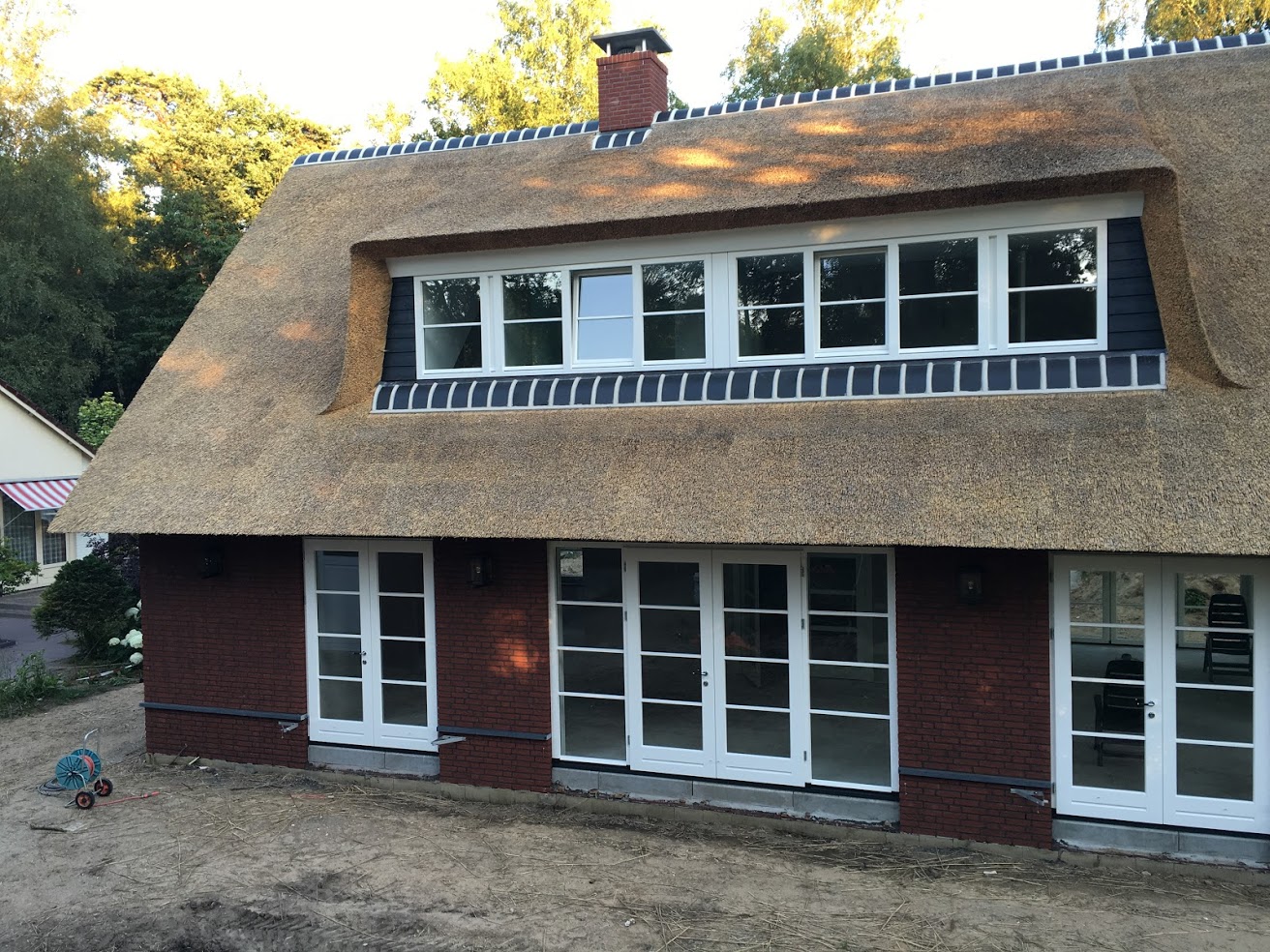 Bij de ze nieuwbouwwoning in Doorwerth is de volledige kap en garage van een rieten kap voorzien. De rieten kap heeft de woning een prachtige uitstraling gegeven en een eigentijds karakter.
