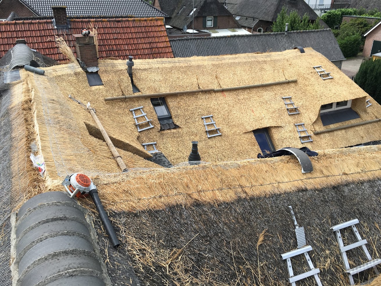 Van deze boerderij in Heerewaarden hebben wij het rietendak vervangen evenals de onderconstructie verbeterd en aangepast.