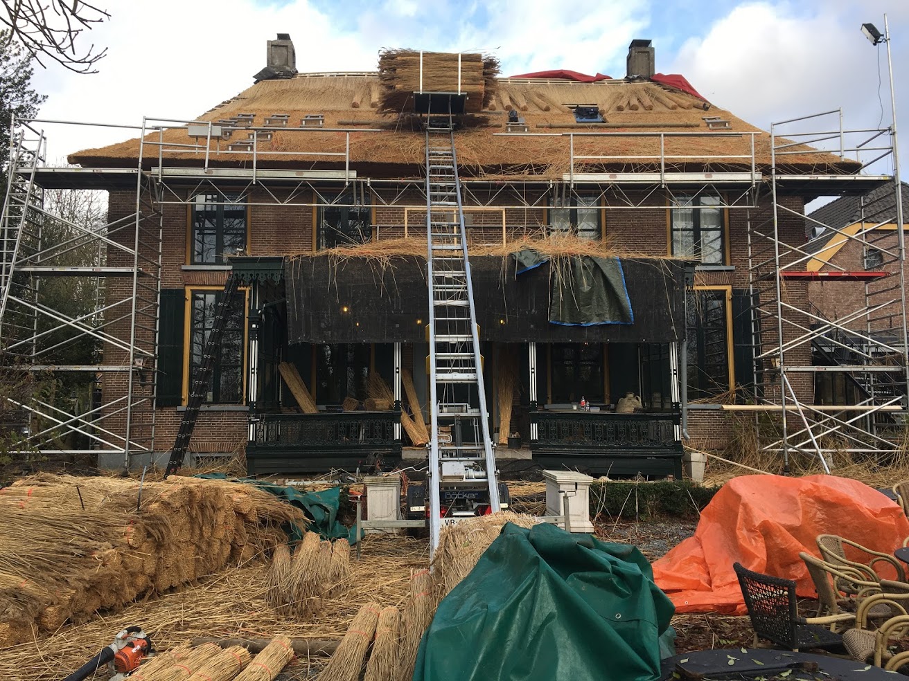 Van deze HerenBoerderij 'De Hucht' te Elst (Gld.) uit 1819, hebben wij het rietendak vervangen en tevens de onderconstructie verbeterd en aangepast.